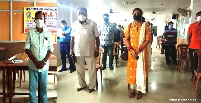 ବ୍ରହ୍ମପୁର, (ଅନିଲ କୁମାର) ବ୍ରହ୍ମପୁରସ୍ଥିତ ସଂଜୟ ମେମୋରିଆଲ ବୈଷୟିକ ଅନୁଷ୍ଠାନ( ଏସ୍ଏମ୍ଆଇଟି) ତରଫରୁ ଓଡ଼ିଶାର ମୁଖ୍ୟମନ୍ତ୍ରୀ ଶ୍ରୀଯୁକ୍ତ ନବୀନ ପଟ୍ଟନାୟକଙ୍କ ଅନୁରୋଧକ୍ରମେ କୋଭିଡ଼ ଯୋଦ୍ଧାମାନଙ୍କୁ ଉତ୍ସାହିତ କରିବା ଓ ସେମାନଙ୍କ ତ୍ୟାଗକୁ ସମ୍ମାନ ଜଣାଇବା ଉଦ୍ଦେଶ୍ୟରେ ଶନିବାର ୫.୩୦ ମିନିଟ୍ରେ ସାମାଜିକ ଦୂରତାକୁ ରକ୍ଷା କରି ଅନୁଷ୍ଠାନର ପରିଚାଳନା କମିଟିର ସଭ୍ୟ ଓ କର୍ମଚାରୀମାନେ ବ୍ରହ୍ମପୁର ହିଲ୍ାପଟଣା ସ୍ଥିତ ଏସ୍ଏମ୍ଆଇଟି ସମ୍ମିଳନୀ ଗୃହରେ ସଂଗୀତ ଗାନ କରିଥିଲେ । ଏଥିରେ ଅନୁଷ୍ଠାନର ସଭାପତି ଡ.ଭଗବାନ ଗନ୍ତାୟତ, ସମ୍ପାଦକ ଜାମୁଲା ଶଙ୍କର ନାରାୟଣ, କୋଷାଧ୍ୟକ୍ଷ ପ୍ରମୋଦ କୁମାର ପଣ୍ଡା, ସଭ୍ୟ ଇଂ. ଶରତ ଚନ୍ଦ୍ର ଚୌଧୁରୀ, ବରିଷ୍ଠ ଆଇନଜୀବୀ ଡ. ସଚିଦାନନ୍ଦ ରଥ, ବୟୋଜ୍ୟେଷ୍ଠ ଡାକ୍ତର ପ୍ରଫୁଲ ଚନ୍ଦ୍ର ସାହୁ, ସଭ୍ୟ ଡ. ସୋନାଲି ଗନ୍ତାୟତ, ଅଧ୍ୟକ୍ଷ ଡ. ଜଗନ୍ନାଥ ସାହୁ, ସୁଧାଂଶୁ ମୋହନ ପାଢ଼ୀ, ଡ. ସତ୍ୟବ୍ରତ ଦାସ, ଡ. ମନୋଜ କୁମାର ମୁନି, ଡ. ମଞ୍ଜୁପ୍ରଭା ଦାସ, ଡ. ହରିକୃଷ୍ଣ ବେହେରା, ଇଂ. ରାମଚନ୍ଦ୍ର ପଣ୍ଡା, ଇଂ. ସବ୍ୟସାଚୀ ପଟ୍ଟନାୟକ, ଭାଲଚନ୍ଦ୍ର ଷଡ଼ଙ୍ଗୀ, ମମତା ସାହୁ, ସିତାରାମ ପଣ୍ଡା, ପ୍ରଶାସନିକ ଅଧିକାରୀ ବିନାୟକ ପାତ୍ର, ରବି ପଟ୍ଟନାୟକ, ଶ୍ରଦ୍ଧାରାଣୀ ଦାସ, କେଦାର ନାଥ ଦାସ, ବିଜୟ ଚନ୍ଦ୍ର ଚୌଧୁରୀ, କେ.ପ୍ରସାଦ ରେଡି, ପ୍ରଶାନ୍ତ କୁମାର ଚୌଧୁରୀ ପ୍ରମୁଖ ଯୋଗଦାନ କରିଥିଲେ ।