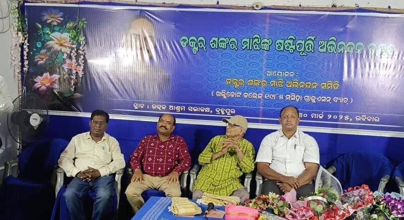 ବ୍ରହ୍ମପୁର,(ଅନିଲ କୁମାର): ଦକ୍ଷିଣାଞ୍ଚଳର ସର୍ବବୃହତ୍ ଶିକ୍ଷାୟତନ ଖଲ୍ଲିକୋଟ ମହାବିଦ୍ୟାଳୟ ୧୯୮୫ ମସିହା ସ୍ନାତକ ବ୍ୟାଚ୍ ଛାତ୍ରଛାତ୍ରୀଙ୍କ ପକ୍ଷରୁ ଆଜି ପୂର୍ବାହ୍ଣରେ ଜାତୀୟ ଐତିହାସିକ ସ୍ମୃତିପୀଠ ‘ଉତ୍କଳ ଆଶ୍ରମ’ ସଭାଗୃହରେ ଏକ ଭବ୍ୟ ଷଷ୍ଟିପୂର୍ତ୍ତି ସମ୍ବର୍ଦ୍ଧନା ଉତ୍ସବ ବର୍ଣ୍ଣାଢ୍ୟ ବାତାବରଣ ମଧ୍ୟରେ ଅନୁଷ୍ଠିତ ହୋଇଯାଇଛି l ବ୍ରହ୍ମପୁର ବିଶ୍ୱବିଦ୍ୟାଳୟ ପ୍ରାଶାସନିକ ଭବନର ବରିଷ୍ଠ ବିଭାଗୀୟ ଅଧିକାରୀ ଡକ୍ଟର୍ ଶଙ୍କର ମାଝୀଙ୍କୁ ପ୍ରାକ୍ତନ ସହାଧ୍ୟାୟୀ, ସହାଧ୍ୟାୟିନୀମାନେ ଉପଢୌକନ, ପ୍ରଶସ୍ତିପତ୍ର ଓ ପୁଷ୍ପସ୍ତବକ ପ୍ରଦାନ ପୂର୍ବକ ଏହି ଉତ୍ସବରେ ଉଚ୍ଛ୍ୱସିତ ସମ୍ବର୍ଦ୍ଧନା ପ୍ରଦାନ କରିଥିଲେ, ଏହି ଅବସରରେ ୧୯୮୫ ବ୍ୟାଚ୍ ସ୍ନାତକ ସହାଧ୍ୟାୟୀ ତଥା ଲୋକସେବକ ମଣ୍ଡଳ ଆଜୀବନ ସଦସ୍ୟ ରାଜେନ୍ଦ୍ର କୁମାର ଜେନାଙ୍କ ପୌରୋହିତ୍ୟରେ ସମ୍ବର୍ଦ୍ଧନା ଉତ୍ସବ ଅନୁଷ୍ଠିତ ହୋଇଥିଲା l ଏହି ଉତ୍ସବରେ ବ୍ରହ୍ମପୁର ଆଞ୍ଚଳିକ ଉଚ୍ଚଶିକ୍ଷା ନିର୍ଦ୍ଦେଶକ ଡ. ସିଦ୍ଧାର୍ଥ ଶଙ୍କର ପାଢ଼ୀ ଉଦ୍ଘାଟକ, ଖ୍ୟାତିପ୍ରାପ୍ତ ଐତିହାସିକ ତଥା ପ୍ରବାଚକ ପ୍ରଫେସର୍ ମଦନ ମୋହନ ମହାପାତ୍ର ମୁଖ୍ୟଅତିଥି, ଏମ୍.କେ.ସି.ଜି. ଭେଷଜ ମହାବିଦ୍ୟାଳୟ ଅନ୍ତଃସ୍ରାଵୀ ବିଭାଗ ମୁଖ୍ୟ ପ୍ରଫେସର୍ ଡ. ପି. ରବିକୁମାର, ଉଚ୍ଚ ମାଧ୍ୟମିକ ଶିକ୍ଷା ପରିଷଦ ଦକ୍ଷିଣାଞ୍ଚଳ ଉପସଚିବ ଡ. କୁଳମଣି ଓଝା ଓ ଆଞ୍ଚଳିକ ଉଚ୍ଚ ମାଧ୍ୟମିକ ଶିକ୍ଷା ନିର୍ଦ୍ଦେଶାଳୟ ଉପ-ନିର୍ଦ୍ଦେଶକ ସୁଶାନ୍ତ ଦାସ ପ୍ରମୁଖ ସମ୍ମାନିତ ଅତିଥି ରୂପେ ଯୋଗଦେଇ ଡ. ଶଙ୍କର ମାଝିଙ୍କ ସଂଗଠନିକ ଦକ୍ଷତା, ଉତ୍ସର୍ଗୀକୃତ ସେବାପରାୟଣତା, ସମାଜର ସବୁ ବର୍ଗ ସହ ବନ୍ଧୁତାପୂର୍ଣ୍ଣ ସଂପର୍କ ସ୍ଥାପନ ଓ ସର୍ବୋପରି ପରୋପକାର ଗୁଣ ସଂପର୍କରେ ଆଲୋକପାତ କରିଥିଲେ l