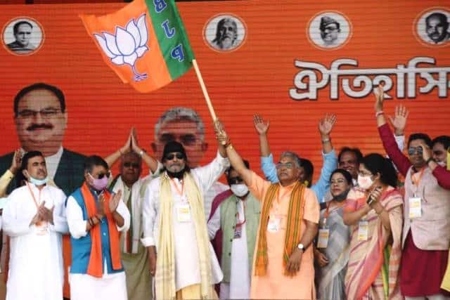 ନୂଆଦିଲ୍ଲୀ, (ଓ୍ୱାଇଏନ୍ଏସ୍): ବଲିଉଡ୍‌ ଅଭିନେତା ମିଥୁନ ଚକ୍ରବର୍ତ୍ତୀ ରବିବାର ଦିନ କୋଲ୍‌କାତା ‘ବ୍ରିଗେଡ୍‌ ଗ୍ରାଉଣ୍ଡ୍‌’ରେ କାର୍ଯ୍ୟକ୍ରମରେ ଯୋଗଦେଇ ‘ବିଜେପି’ରେ ସାମିଲ ହୋଇଛନ୍ତି। ପ୍ରଧାନମନ୍ତ୍ରୀ ମୋଦୀଙ୍କ ଏହି ରାଲିରେ ଫିଲ୍ମଷ୍ଟାର୍‌ ମିଥୁନଙ୍କ ଉପସ୍ଥିତି ବହୁ ବିଜେପି ସମର୍ଥକଙ୍କୁ ‘ବ୍ରିଗେଡ୍‌ ପରେଡ୍‌ ଗ୍ରାଉଣ୍ଡ୍‌’କୁ ଆକର୍ଷିତ କରିଛି। ଏକଦା ‘ସିପିଆଇ(ଏମ୍‌)’ର ଘନିଷ୍ଠ ଥିବା ମିଥୁନ ଚକ୍ରବର୍ତ୍ତୀ କିଛି ବର୍ଷ ନିମନ୍ତେ ‘ତୃଣମୂଳ କଂଗ୍ରେସ’ ପକ୍ଷରୁ ରାଜ୍ୟସଭାରେ ସାଂସଦ ଥିଲେ। ନିକଟ ଅତୀତରେ ‘ଆର୍‌ଏସ୍‌ଏସ୍‌’ର ମୁଖ୍ୟ ମୋହନ ଭାଗବତ ଏବଂ କୈଳାସ ବିଜୟବର୍ଗୀୟଙ୍କ ସହ ମିଥୁନ ଚକ୍ରବର୍ତ୍ତୀଙ୍କ ସାକ୍ଷାତ୍‌ ଯୋଗୁଁ ସେ ବିଜେପିରେ ଯୋଗ ଦେଇ ପାରନ୍ତି ବୋଲି କଳ୍ପନାଜଳ୍ପନା ଚାଲିଥିଲା।