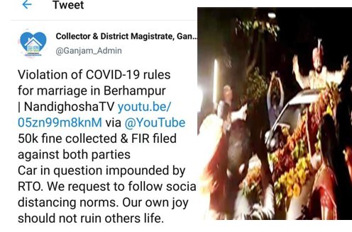 ବ୍ରହ୍ମପୁର, (ରାଜେଶ ପଟ୍ଟନାୟକ): ବିବାହ ଉତ୍ସବରେ ଖୋଲା ଖୋଲି ଭାବେ କୋଭିଡ୍ ନିୟମ ଉଲଂଘନ କରିବା ପଡିଲା ମହଙ୍ଗା।ଏହି ଅଭିଯୋଗ ଆଧାରରେ ଗୋପାଳପୁର ଥାନାରେ ମାମଲା ରୁଜୁ ହୋଇଛି। ଏ ସଂପର୍କରେ ବ୍ରହ୍ମପୁର ଏସ୍ପି ସୂଚନା ଦେଇଛନ୍ତି। ବ୍ରହ୍ମପୁର ନନ୍ଦନ ହୋଟେଲର ମାଲିକ କୃଷ୍ଣ ସାହୁଙ୍କୁ ଟାଉନ ଥାନା ପୋଲିସ ବର୍ତ୍ତମାନ ଅଟକ ରଖିଛି । ଦୁଇ ଦିନ ପୁର୍ବେ ସ୍ତାନୀୟ ଗୋପାଳପୁର ମେଫେର ହୋଟେଲରେ ବିବାହ ହୋଇଥିଲା । କୃଷ୍ଣଚନ୍ଦ୍ର ସାହୁ ବିବାହ ପାଇଁ ଉପଜିଲ୍ଲାପାଳଙ୍କ ଠାରୁ ଅନୁମତି ନେଇଥିଲେ । ତେବେ ସେଠାରେ କୌଣସି ନିୟମ ମାନି ନଥିବା ସହ ମାସ୍କ ଏବଂ ସାମାଜିକ ଦୂରତା ମାନି ନଥିଲେ । ଯାହା ଫଳରେ ପୋଲିସ ଆଜି ବିବାହ ପାଇଁ ଆବେଦନ କରିଥିବା କୃଷ୍ଣ ସାହୁଙ୍କୁ ଏବେ ଅଟକ ରଖିଛି । ତଦନ୍ତ ପରେ କୋଭିଡ୍ ନିୟମ ଉଲଂଘନକାରୀଙ୍କୁ ଉଚିତ ଦଣ୍ଡ ମିଳିବ ବୋଲି ଏସ୍ପି ପି.ପିନାକ ମିଶ୍ର କହିଛନ୍ତି। ସେପଟେ ହୋଟେଲରୁ ୫୦ ହଜାର ଟଙ୍କା ଜୋରମାନା ଆଦାୟ ସହ ବର ଯାତ୍ରୀ ଗାଡ଼ି ଜବତ କରିଛି ପୋଲିସ୍। ଏହି ଘଟଣାରେ ଗୋପାଳପୁର ଥାନାରେ ୨ଟି ମାମଲା ରୁଜୁ ହୋଇଥିବା ଗଞ୍ଜାମ ଜିଲ୍ଳାପାଳ ବିଜୟ ଅମୃତ କୁଲାଙ୍ଗେ କହିଛନ୍ତି।