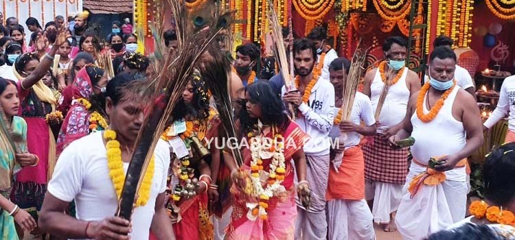 ଯୋଡା,(ସମୀର କୁମାର ଦାସ): କେନ୍ଦୁଝର ଜିଲା ଯୋଡା ସହରସ୍ଥିତ ଭୂୟାଁବସ୍ତି ପାତ୍ରସାହିଠାରେ ଥିବା କୋଠି ଶାଳରେ କୋଭିଡ୍ ନିୟମକୁ ପାଳନକରି ଶୁକ୍ରବାର ମା’ ଠାକୁରାଣୀଙ୍କ ଓଷା ଅନୁଷ୍ଠିତ ହୋଇଯାଇଛି । ଏହି ଓଷା ଚଳିତବର୍ଷ ୭୮ ବର୍ଷରେ ପଦାର୍ପଣ କରିଛି । ଅସେଇଁକଳା ଗ୍ରାମର କୁମ୍ଭାର ପରିବାରରୁ ଠାକୁରାଣୀ ମା’ ଯୋଡାର କୋଠିଶାଳକୁ ଆସିବା ପରେ ୮ ଦିନ ଧରି ମା’ ଙ୍କର ରୀତିନୀତି ଅନୁଯାୟୀ ଦେହୁରୀମାନେ ପୂଜା କରିଥାନ୍ତି । ଶ୍ରଦ୍ଧାଳୁମାନେ ଓଷା ଗୀତ ଗାନ କରି କଣ୍ଟା ର ଦୋଳିରେ ଝୁଲିବା ସହିତ ନିଆଁ ଖନ୍ଦାରେ ଚାଲିଚାଲି ମା’ଙ୍କର ସ୍ମରଣ କରିଥାନ୍ତି । ମା’ଙ୍କର ଏହି ଓଷା ସମ୍ପର୍କରେ ମୁଖ୍ୟ ଦେହୁରୀ ରମେଶ ଚନ୍ଦ୍ର ପାତ୍ର, ବାବୁ ପାତ୍ର, ବସନ୍ତ ପାତ୍ର, ଇଶ୍ୱର ପାତ୍ର ପ୍ରମୁଖ କହିଛନ୍ତି ଯେ, ରାତି ୨ଟା ବେଳେ ମା’ଙ୍କୁ କୋଠିଶାଳରୁ ପୂଜା ମଣ୍ଡପକୁ ବାହାର କରାଯାଇ ଉପବାସ ରହିଥିବା ଶ୍ରଦ୍ଧାଳୁମାନେ ଅପରାହ୍ନ ସାଢେ ୪ଟା ପର୍ଯ୍ୟନ୍ତ ପରମ୍ପରା ଅନୁଯାୟୀ ପୂଜାର୍ଚ୍ଚନା ଆରମ୍ଭ କରାଯାଇଥିଲା । ପରମ୍ପରା ଅନୁଯାୟୀ ଗାଆଣୀ ଓଷାଗୀତ ଗାଇ ମା’ଙ୍କର ସ୍ମୃତିଚାରଣ କରିଥିଲେ । ସମସ୍ତ ପୂଜାର୍ଚ୍ଚନା ସରିବାପରେ ଶତାଧିକ ଶ୍ରଦ୍ଧାଳୁଙ୍କ ଗହଣରେ ମା’ଙ୍କର ବିସର୍ଜନ କରାଯାଇଥିଲା । ରୀତିନୀତି ଅନୁଯାୟୀ ସନ୍ଧ୍ୟାବେଳେ ମାନସିକ ରଖିଥିବା ଶ୍ରଦ୍ଧାଳୁ ମାନେ ପଣା ପିଇଥିଲେ । ମା’ଙ୍କର ପୂଜାରେ ସବୁବର୍ଷ ପରି ଚଳିତ ବର୍ଷ ମଧ୍ୟ ମାନସିକଧାରୀ ଓ ଶ୍ରଦ୍ଧାଳୁମାନେ ଭୋଗ ଏବଂ ଅନ୍ୟାନ୍ୟ ପାରମ୍ପରିକ ନୈବେଦ୍ୟ ଅର୍ପଣ କରିଥିଲେ । ଶୁକ୍ରବାର ଯୋଡା ସମେତ କଣ୍ଡରା, ବାସୁଦେବପୁର, ଧୋବାକୁଚୁଡା, ରଘୁଆଳ ସାହି, କମଳପୁର, ବିରିକଳା ଆଦି ସ୍ଥାନରୁ ମା’ଙ୍କର ପୂଜା ଦେଖିବା ପାଇଁ ଶ୍ରଦ୍ଧାଳୁମାନେ ଯୋଡା ଆସିଥିଲେ । ଝାଡଖଣ୍ଡ ରାଜ୍ୟରୁ ମଧ୍ୟ ବହୁ ଶ୍ରଦ୍ଧାଳୁ ଏହି ପୂଜାରେ ଯୋଗଦାନ କରି ମାନସିକ ପୂରଣ କରିଥିଲେ ।