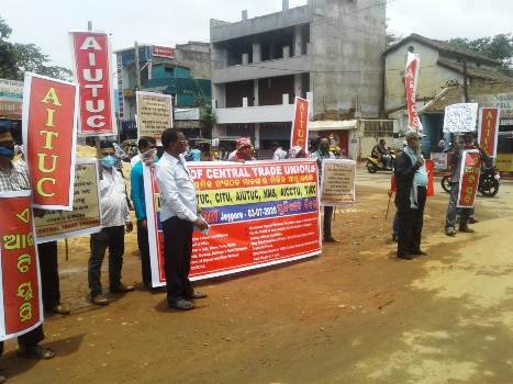 ଜୟପୁର, (ୱାଇଏନ୍‌ଏସ୍‌):ବିଭିନ୍ନ ଦାବି ନେଇ ଶ୍ରମିକ ସଙ୍ଗଠନ ପକ୍ଷରୁ ଜୟପୁର ଠାରେ ବିକ୍ଷୋଭ ପ୍ରଦର୍ଶନ କରାଯାଇଛି । ଦାବି ମଧ୍ୟରେ, ରେଳବାଇ ଘରୋଇ କରଣ ବନ୍ଦ କରିବା, ବ୍ୟାଙ୍କ ବୀମା କମ୍ପାନୀ ସବୁ ଘରୋଇ କରଣ ବନ୍ଦ କରିବା, ଶ୍ରମ ଆଇନ୍ କାନୁନ୍ ସଂଶୋଧନ, କରୋନା ପ୍ରପିଡିତ ସମସ୍ତ ଶ୍ରମିକ ମାନଙ୍କୁ ନିଯୁକ୍ତି, ପେଟ୍ରୋଲ ଡିଜେଲ ଦର ବୃଦ୍ଧି କମ୍ କରିବା , ସମସ୍ତଙ୍କ ପରିବାର କୁ ମାସକୁ ୧୦ ହଜାର ଟଙ୍କା ଲେଖାଏଁ ଦେବା ଏବଂ ଲକ୍ ଡାଉନ୍ ସମୟରେ ସମସ୍ତଙ୍କୁ ରିଲିଫ୍ ଯୋଗେଇ ଦେବା ପାଇଁ ଦାବି କରି କେନ୍ଦ୍ରୀୟ ଶ୍ରମିକ ସଂଗଠନ ମାନଙ୍କର ମିଳିତ ଆହ୍ୱାନ କ୍ରମେ ଜୟପୁର ମୁଖ୍ୟ ଟ୍ରାଫିକ ଛକରେ ବିକ୍ଷୋଭ ପ୍ରଦର୍ଶନ କରିଥିଲେ ସମସ୍ତ ଶ୍ରମିକ ସଂଗଠନ ର ନେତା ଓ କର୍ମୀ ମାନେ ।