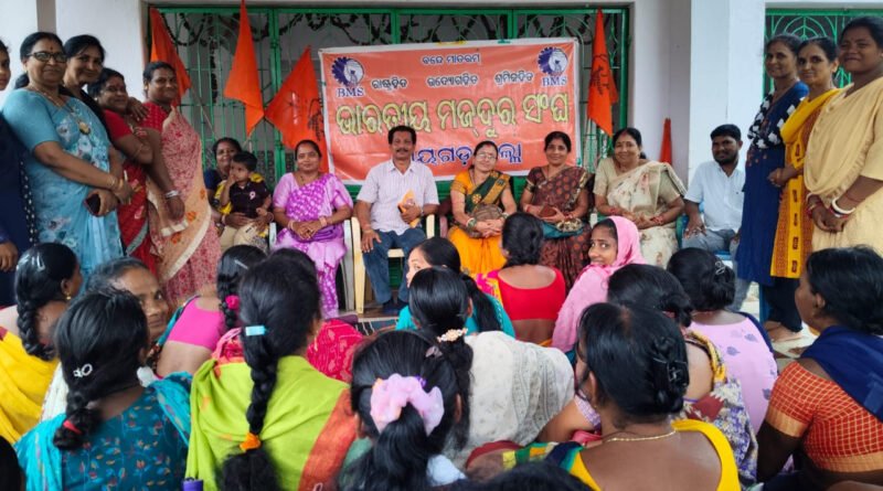 କଲ୍ୟାଣସିଂହପୁର/୨୦/୦୭/(ଏଙ୍କେଟେଶ୍ୱର ପାଢ଼ୀ) ଭାରତୀୟ ମଜଦୁର ସଂଘ ଦ୍ୱାରା ପରିଚାଳିତ ଅଲ୍ ଓଡିଶା ଅଙ୍ଗନୱାଡ଼ି ଲେଡିଜ ୱାର୍କରର୍ସ ଆସୋସିଏସନ୍ କଲ୍ୟାଣସିଂହପୁର ବ୍ଳକର ଏକ ବୈଠକ ସ୍ଥାନୀୟ ଗୁଣ୍ଡିଚା ମନ୍ଦିର ଠାରେ ଅନୁଷ୍ଠିତ ହୋଇଯାଇଛି। ଜିଲ୍ଲା ସଭାନେତ୍ରୀ ଶ୍ରୀମତୀ ଜୟନ୍ତୀ ପଦ୍ମାଳୟା ସାହୁ ଏବଂ ସମ୍ପାଦିକା ଶ୍ରୀମତୀ ଉଷା ରାଣୀ ଦାଶଙ୍କ ନେତୃତ୍ବରେ ଆୟୋଜିତ ବୈଠକରେ ମୂଖ୍ୟ ଅତିଥି ଭାବେ ଶ୍ରମିକ ନେତା ତଥା ଭାରତୀୟ ମଜଦୁର ସଂଘ ର ରାଜ୍ଯ ଉପସଭାପତି ଶ୍ରୀ ଯୋଗେଶ୍ଵର ଦାସ ଯୋଗ ଦେଇ ସରକାରଙ୍କ ଯୋଜନାକୁ ସଫଳ କରିବାରେ ମୂଖ୍ୟ ଭୂମିକା ନେଉଥିବା ସହ ଶିଶୁ ମୃତ୍ୟୁ ହାର ମା ମୃତ୍ୟୁ ହାର କମାଇବାରେ ଏବଂ ରାଜ୍ୟ ସରକାର ଏବଂ କେନ୍ଦ୍ର ସରକାରଙ୍କ ଯୋଜନା କୁ ସଫଳ କରିବା ରେ ମୂଖ୍ୟ ଭୂମିକା ନେଉଥିବା ଅଙ୍ଗନୱାଡ଼ି କର୍ମୀ ଏବଂ ସହାୟିକା ମାନଙ୍କ ଦୀର୍ଘ ଦିନର ବିଭିନ୍ନ ଦାବିକୁ ନେଇ ଆଲୋଚନା କରାଯାଇ