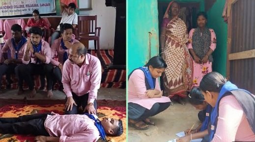 ପୋଲସରା,(ଅନୀଲ କୁମାର ମହାରଣା) : ଗଞ୍ଜାମ ଜିଲ୍ଲା ଅନ୍ତର୍ଗତ ପୋଲସରା ବିଜ୍ଞାନ ମହାବିଦ୍ୟାଳୟର ଜାତୀୟ ସେବା ଯୋଜନା – ପୁରୁଷ ଓ ମହିଳା ୟୁନିଟ ପକ୍ଷରୁ ଶୀତ କାଳୀନ ଶିବିରର ଚତୁର୍ଥ ଦିବସରେ ସ୍ବେଚ୍ଛାସେବୀମାନେ ସାକ୍ଷରତା ସର୍ଭେ ଓ ଅଧାରୁ ପାଠ ଛାଡିଥିବା ପିଲାଙ୍କର ସର୍ଭେ କାର୍ଯ୍ୟ ପୋଷ୍ୟ ଗ୍ରାମ ତୋଟା ସାହି ଓ ଦେବୀ ନଗରରେ ପ୍ରୋଗ୍ରାମ ଅଫିସର୍ ସେକ୍ ଫରିଦ୍ ଓ ଡକ୍ଟର୍ ଜ୍ୟୋତ୍ସ୍ନା ରାଣୀ ପଟ୍ଟନାୟକଙ୍କ ତତ୍ତ୍ଵାବଧାନରେରେ ଅନୁଷ୍ଠିତ ହୋଇଥିଲା। ଅପରାହ୍ନରେ ଭାରପ୍ରାପ୍ତ ଅଧକ୍ଷ ଡକ୍ଟର ହରିଶ୍ ଚନ୍ଦ୍ର ପାଇକ ପ୍ରଦୀପ ପ୍ରଜ୍ବଳନ କରି ଦ୍ଵିତୀୟ ପର୍ଯ୍ୟାୟ କାର୍ଯ୍ୟକ୍ରମକୁ ଉଦଘାଟନ କରିଥିଲେ। ମାଣିତାରା ବିଜ୍ଞାନ ଉଚ୍ଚ ମାଧ୍ୟମିକ ବିଦ୍ୟାଳୟର ଯୁବ ରେଡ କ୍ରସ ଉପଦେଷ୍ଟା ଅଧ୍ୟାପକ ଦିଲ୍ଲୀପ କୁମାର ଆଚାର୍ଯ୍ୟ ସାଧନ କର୍ମୀ ଭାବେ ଯୋଗ ଦେଇ ପ୍ରାଥମିକ ଚିକିତ୍ସା :- କୃତିର୍ମ ଶ୍ୱାସକ୍ରିୟା, DRSCAB, ରକ୍ତସ୍ରାବ, ନିଆଁ ଲାଗିବା, ସାପ କାମୁଡିବା, ଡ୍ରେସିଂ ଏବଂ ପଟି, ହାଡ଼ଭଙ୍ଗା ଇତ୍ୟାଦିର ଉପଚାର ବିଷୟରେ ବିସ୍ତୃତ ଭାବରେ ତାଲିମ ଦେଇଥିଲେ। ମହିଳା ବିଭାଗର ପ୍ରୋଗ୍ରାମ ଅଫିସର୍ ଡକ୍ଟର ଜ୍ୟୋତ୍ସ୍ନା ରାଣୀ ପଟ୍ଟନାୟକ ସଂଯୋଜନା କରିଥିବା ବେଳେ ପୁରୁଷ ବିଭାଗ ପ୍ରୋଗ୍ରାମ ଅଫିସର୍ ସେକ୍ ଫରିଦ୍ ଧନ୍ୟବାଦ୍ ଅର୍ପଣ କରିଥିଲେ।